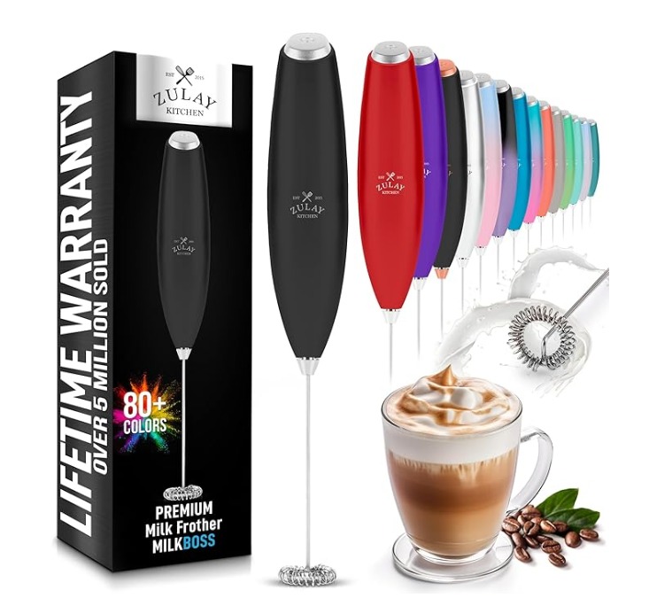 Zulay Kitchen Milk Frother Handheld Electric Whisk – Frother Wand, Durable Drink Mixer, Stainless Steel Whisk, Coffee Frother, Hand Blender, Frother for Protein Powder, Lattes, Matcha & More - Black